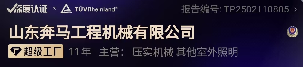 山東奔馬憑借卓越的生產實力和優質的產品,榮獲阿里深度認證的“超級工廠”稱號,同時被百度認證為“實力工廠”,充分彰顯了其在行業中的領先地位。公司專注于研發與生產小型壓路機、移動照明車、液壓動力站等設備,以創新技術和精湛工藝為客戶提供高效、可靠的解決方案。我們誠摯邀請各界朋友蒞臨工廠參觀考察,親身體驗我們的生產流程與產品性能。山東奔馬將以專業的態度和優質的服務,與您攜手共創美好未來!歡迎隨時聯系,期待與您合作!全國免費服務電話:400-6537-859